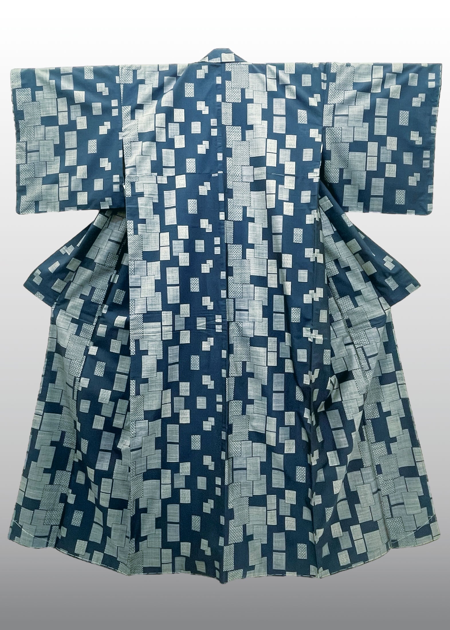 (袷)藍地色紙重ね文大島紬 LUKMA-022