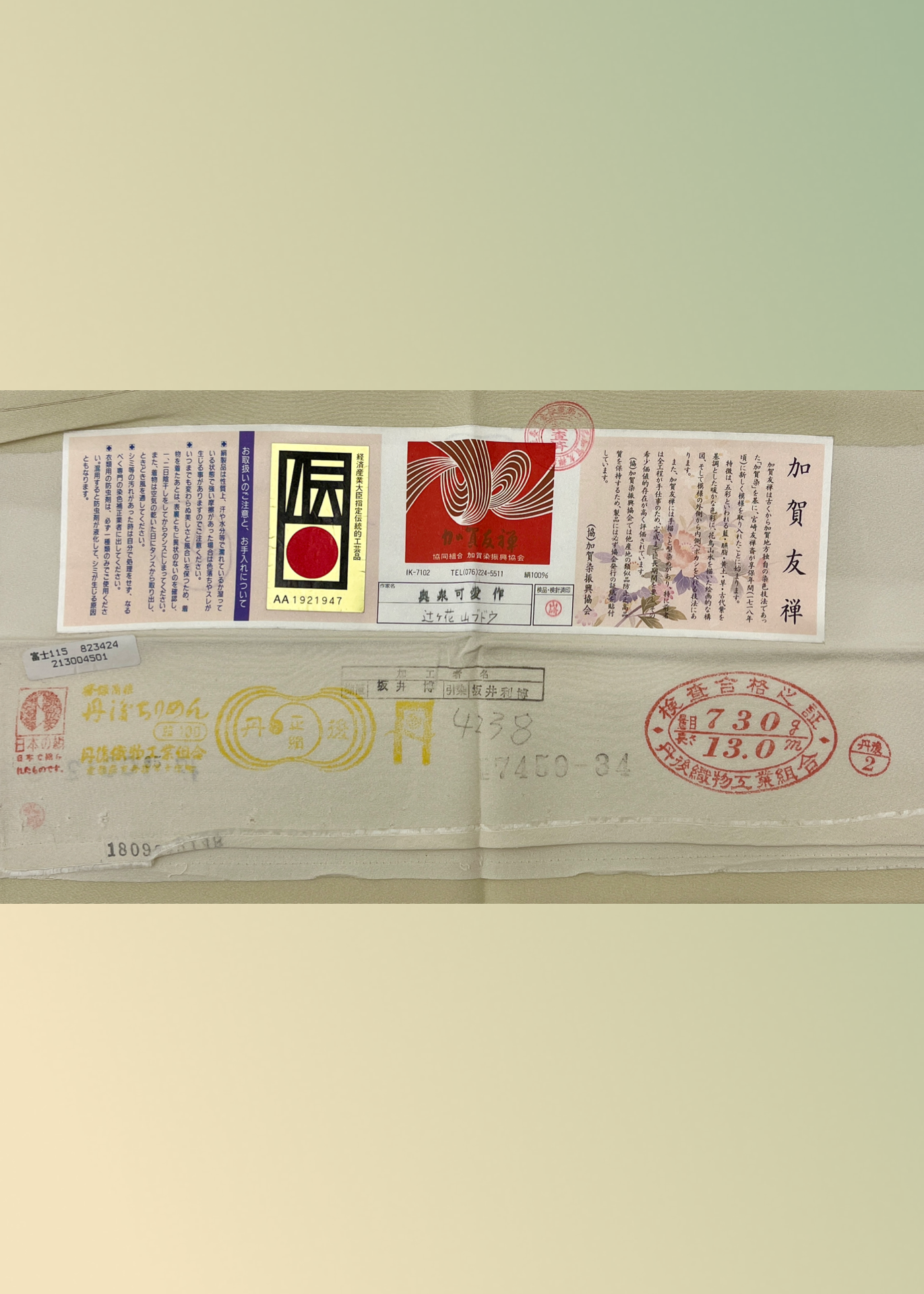 本加賀友禅は石川県金沢市を中心に発展した日本を代表する染色技法です。加賀友禅独自の美しい色彩と自然界の美しさをそのままに描く精緻な柄付けは高級感に溢れています。作家の奥泉可愛のセンスに溢れた逸品です。