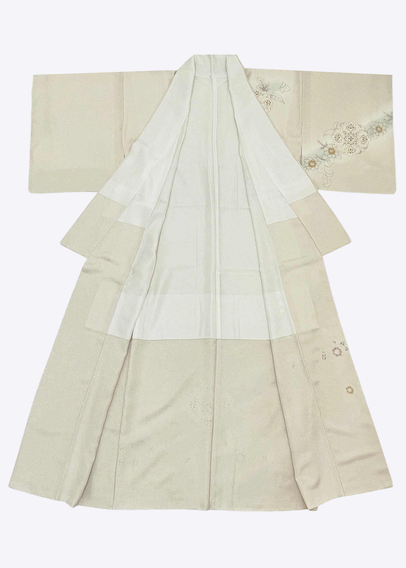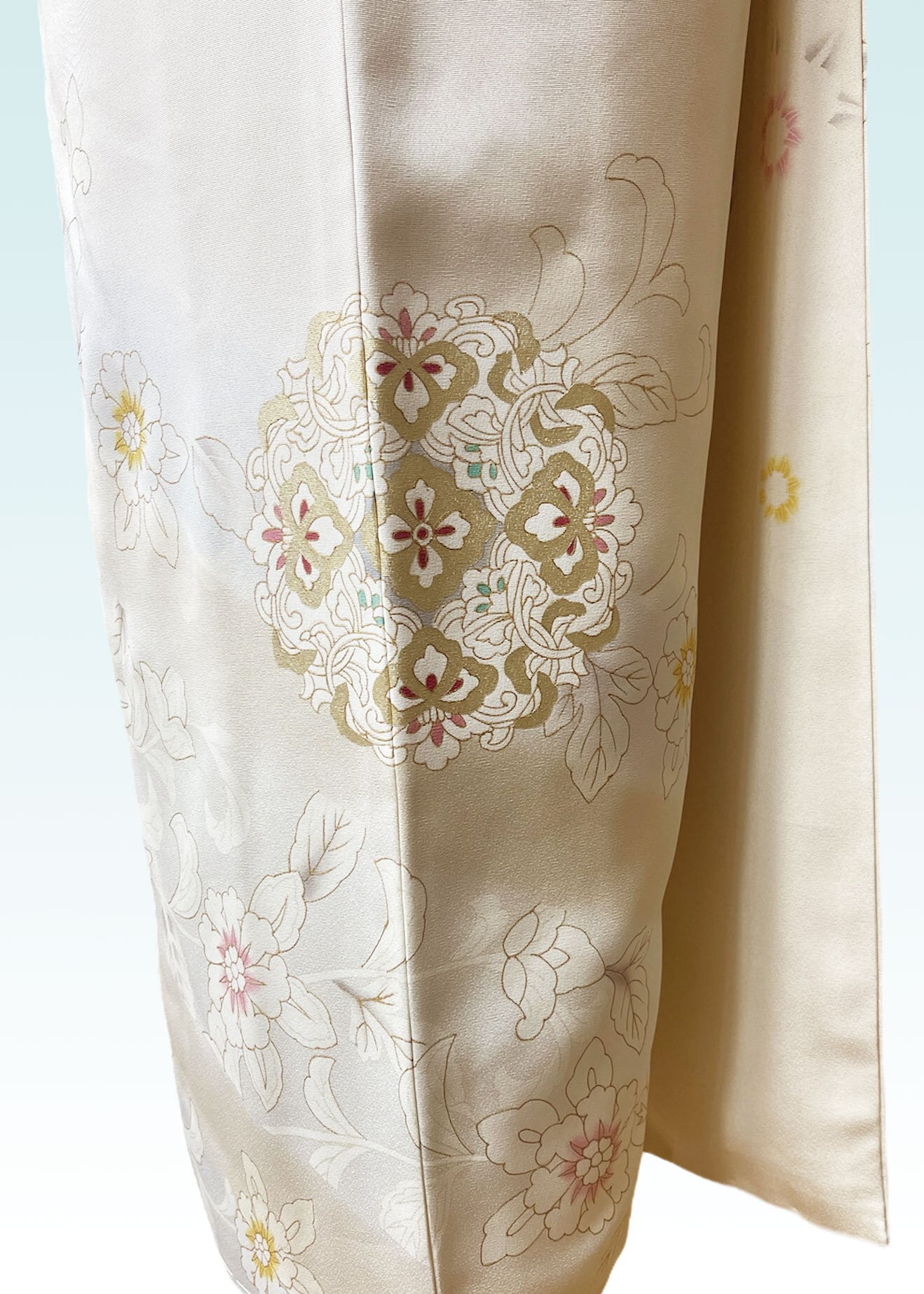 (袷)クリーム地金駒刺繍モダン訪問着 LUKOO−037(リユース品)
