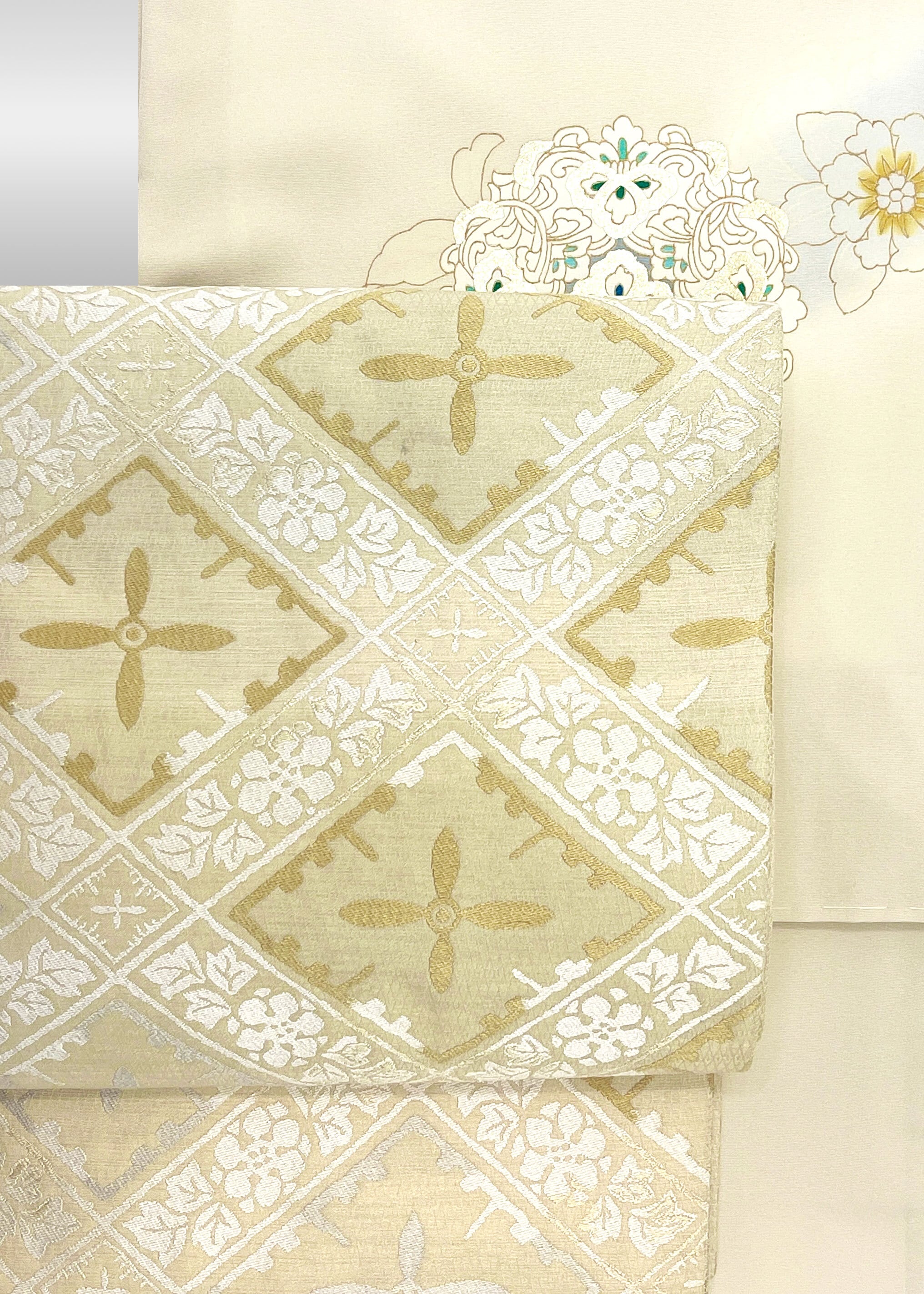(袋帯)シルバー地花菱十字文となみ LUOGH−037(リユース品)