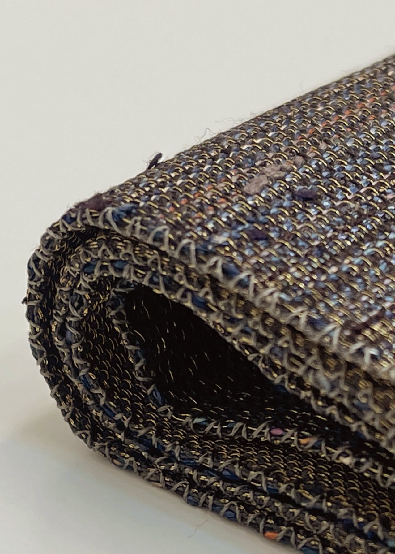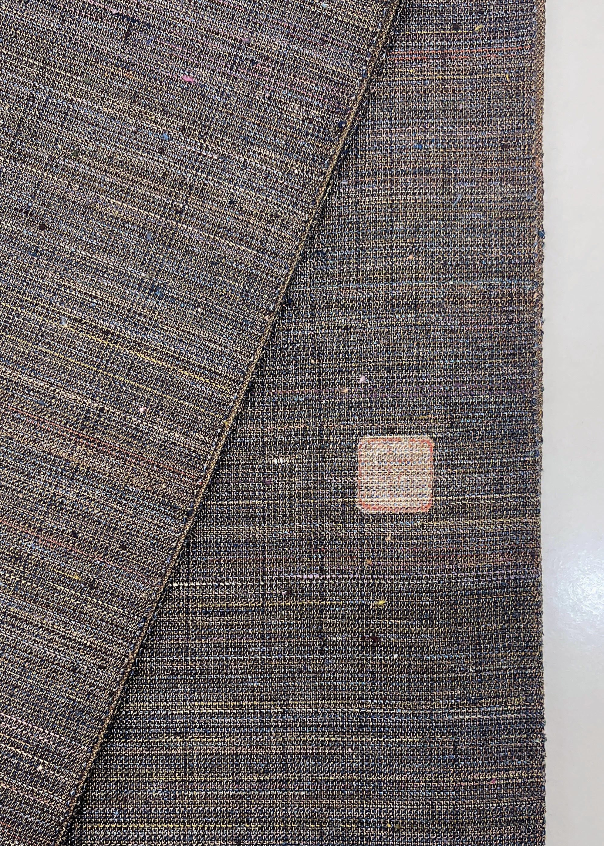 織成と名付けられた曽根武勇の袋帯です。創り上げたのは京都にある織匠「田歌」という究極の「織」を追求している工房となります。曽根武勇氏が代表を務めており、西陣織物協同組合にはあえて席をおかずにオリジナルな織物を作り出すこだわりのある高級ブランドです。個性の強い絞りの訪問着にあえて単色に近い強さのある帯を合わせてみました。様々な色が織り込まれ帯に表情を出しています。