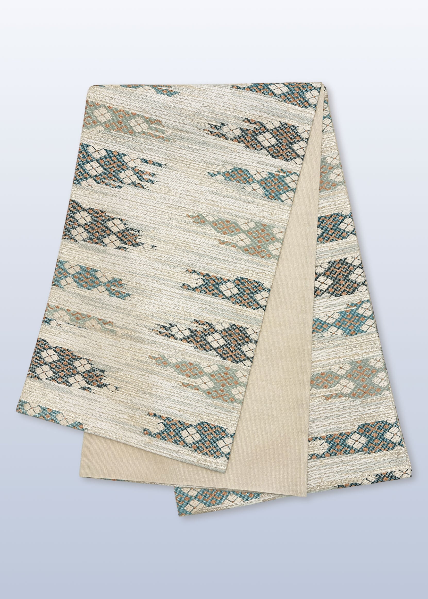 (袋帯)クリーム地霞四つ菱文 LUOW−045(リユース品)