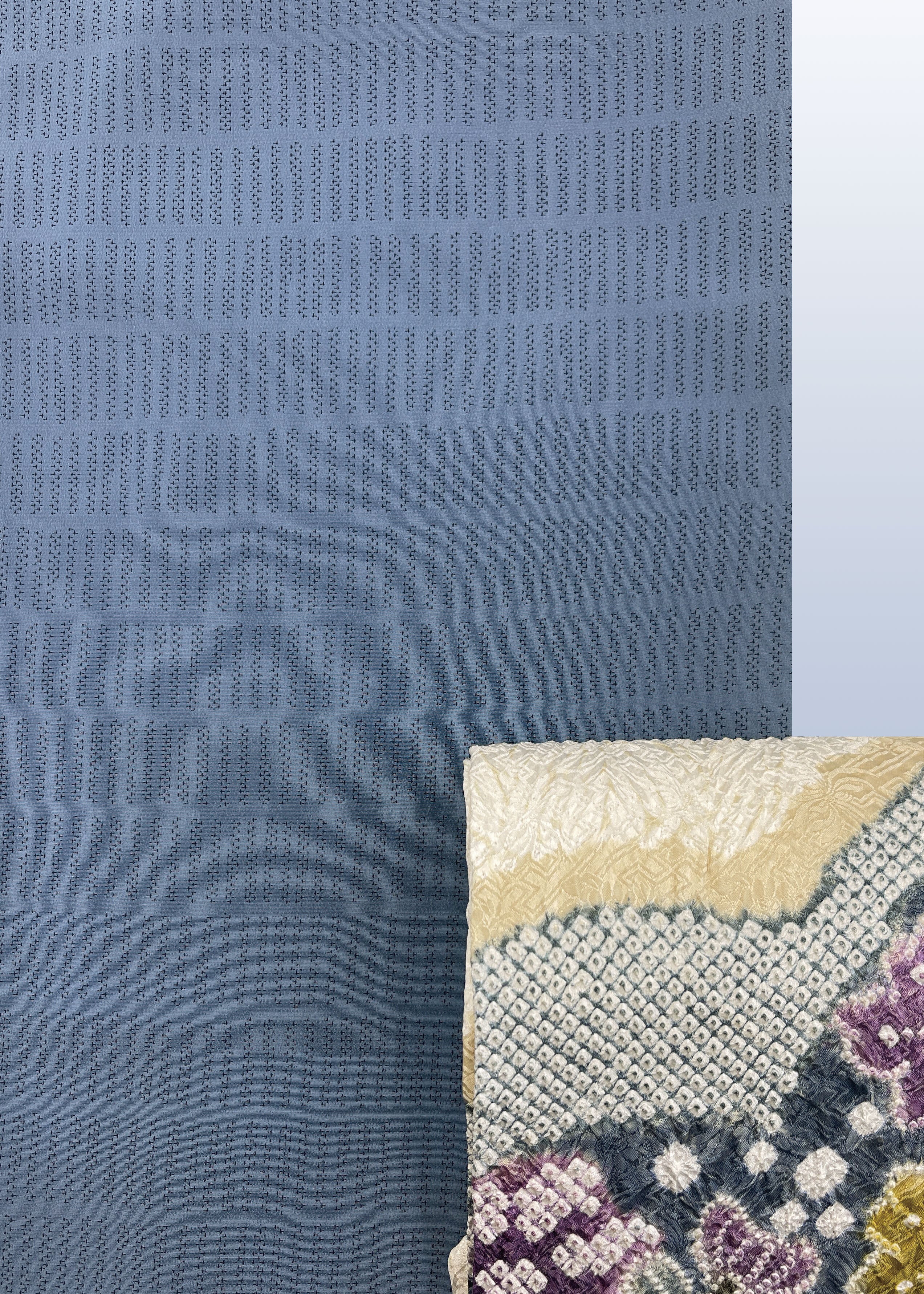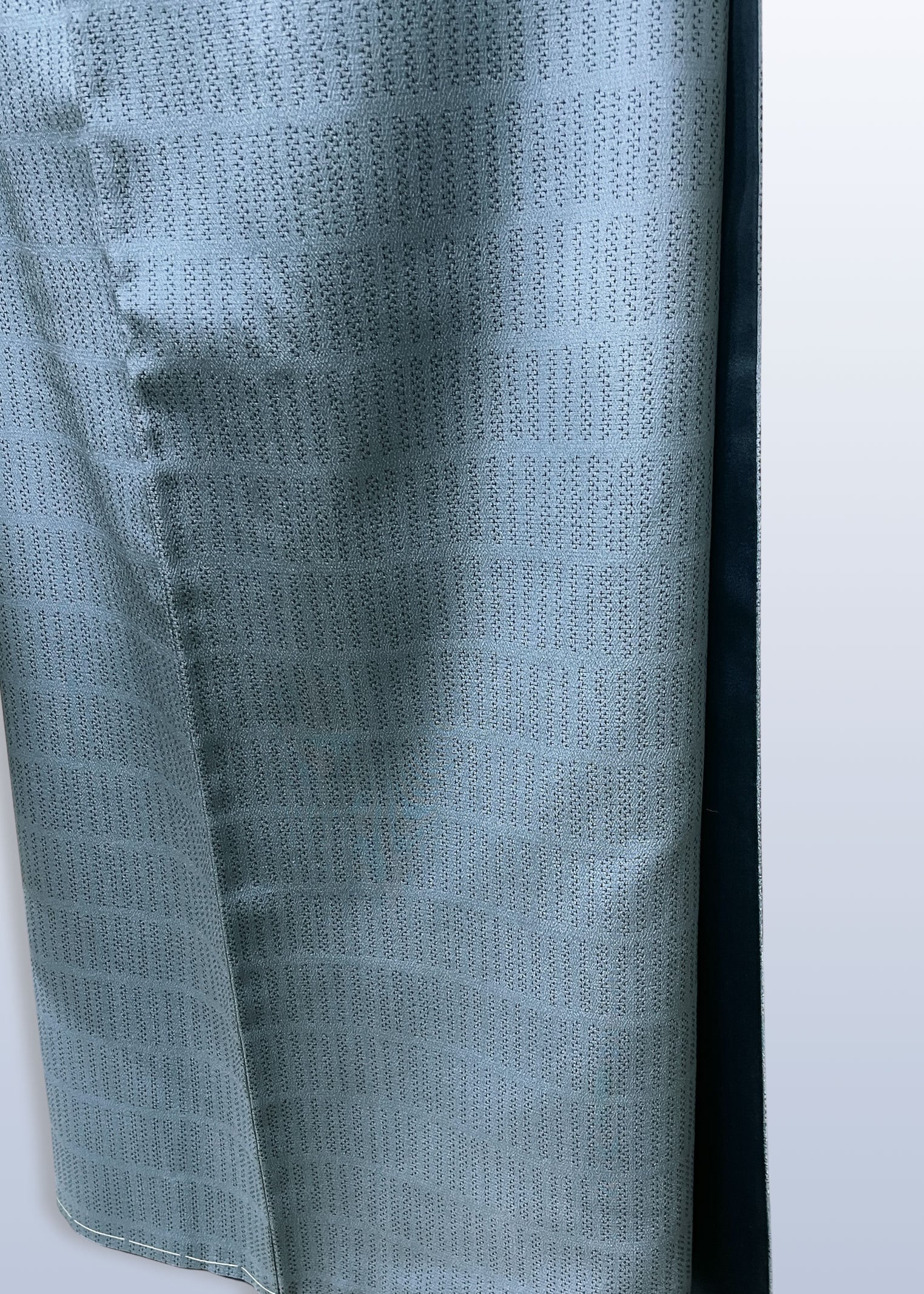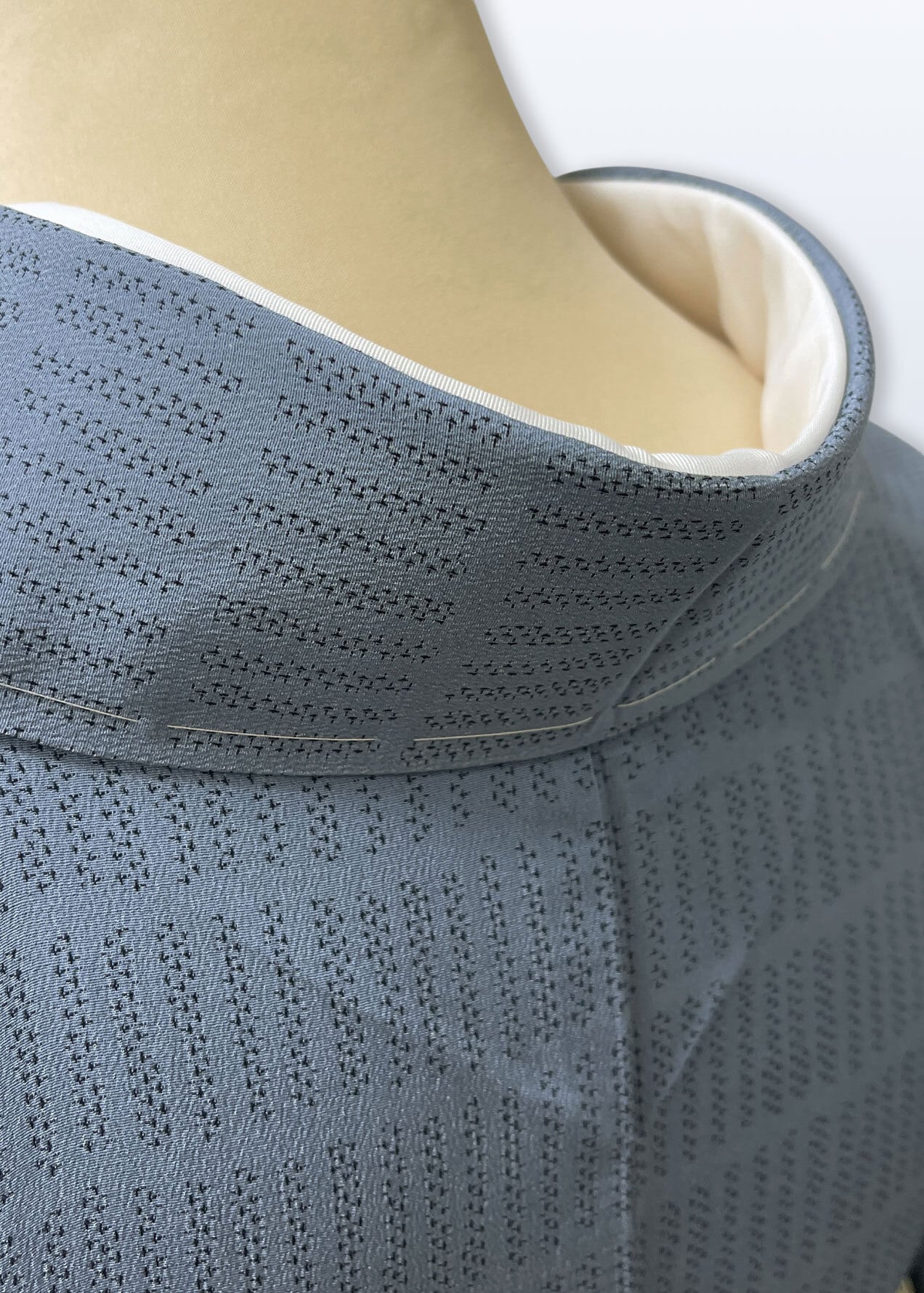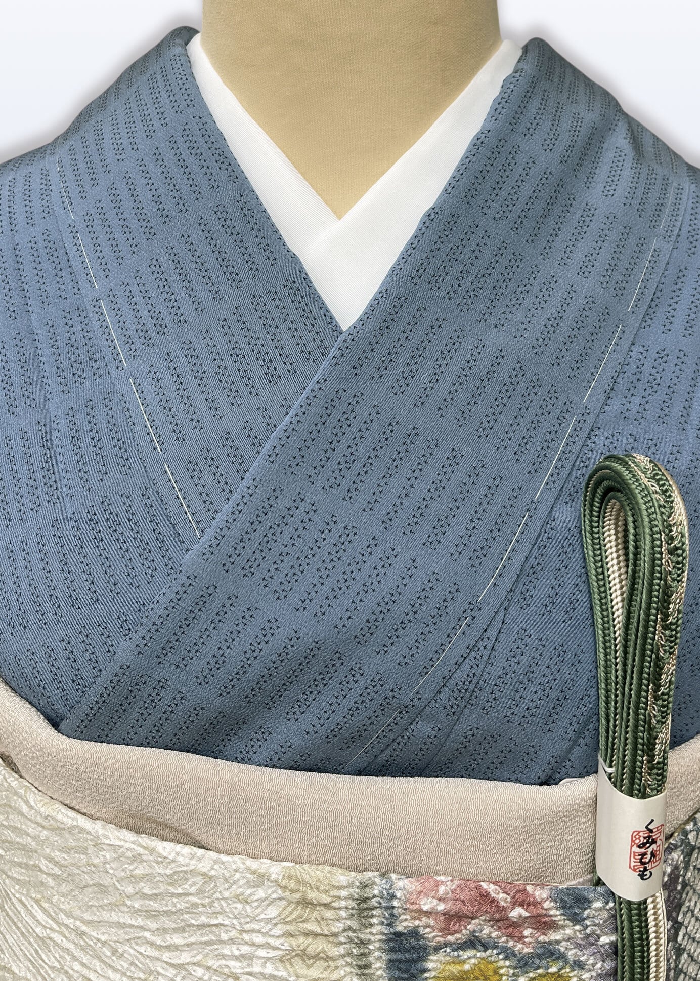こちらのお着物は地紋無地と同じような扱いで、名物裂や有職文様などの帯を合わせて、お茶のお席や和のお稽古の会などにお召しになるのも良いと思いますし、お食事の会や観劇などにも良いと思います。
