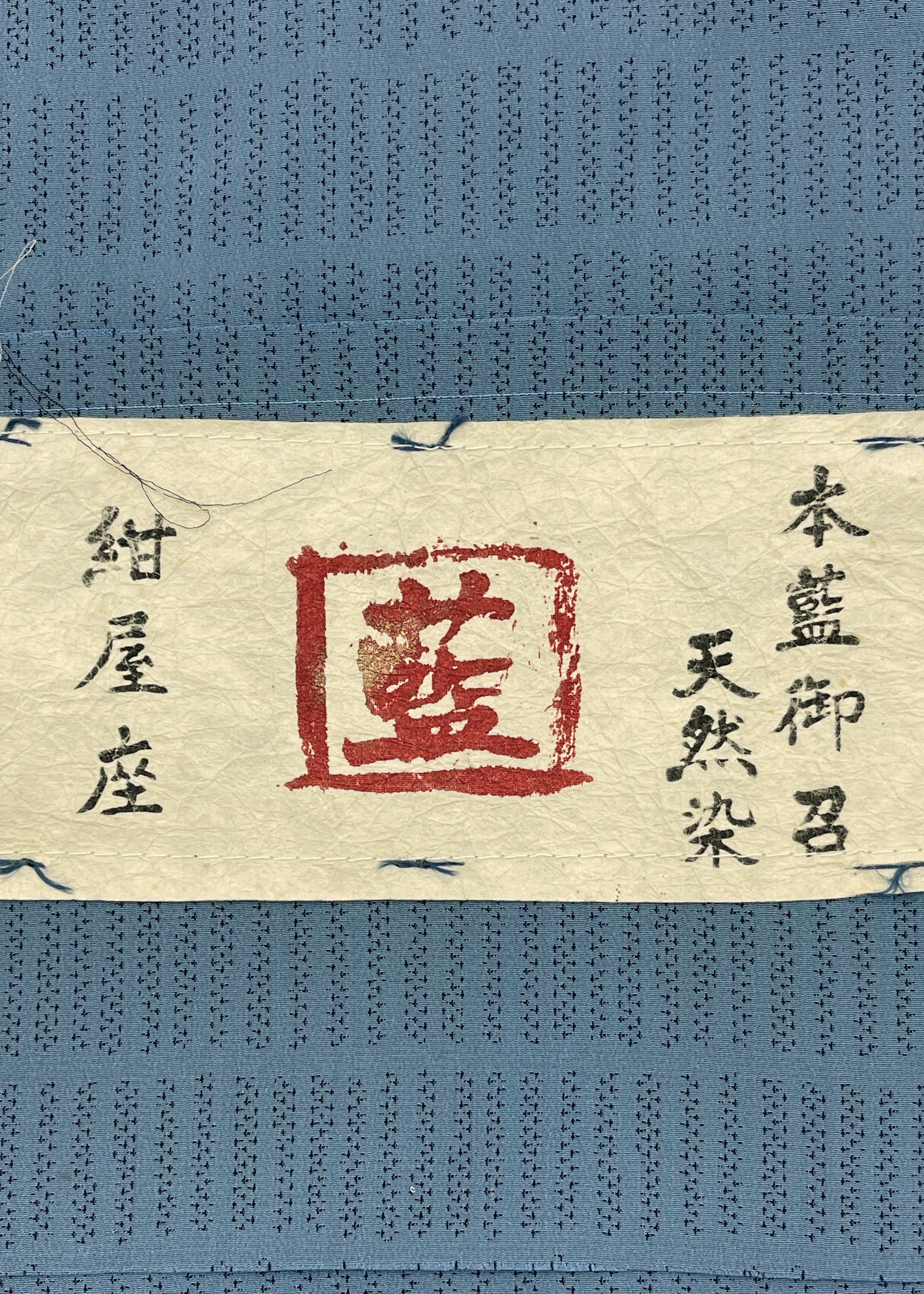 紺屋座とは染物屋を意味する言葉で江戸時代の藍染の職人を指す言葉です。今回ご紹介する紺屋座のお召し着物は天然の灰汁醗酵を使ったお召し着物です。糸を先染めてヨリを強く掛かけて、お召しとしてカタスの絣を織り上げています。