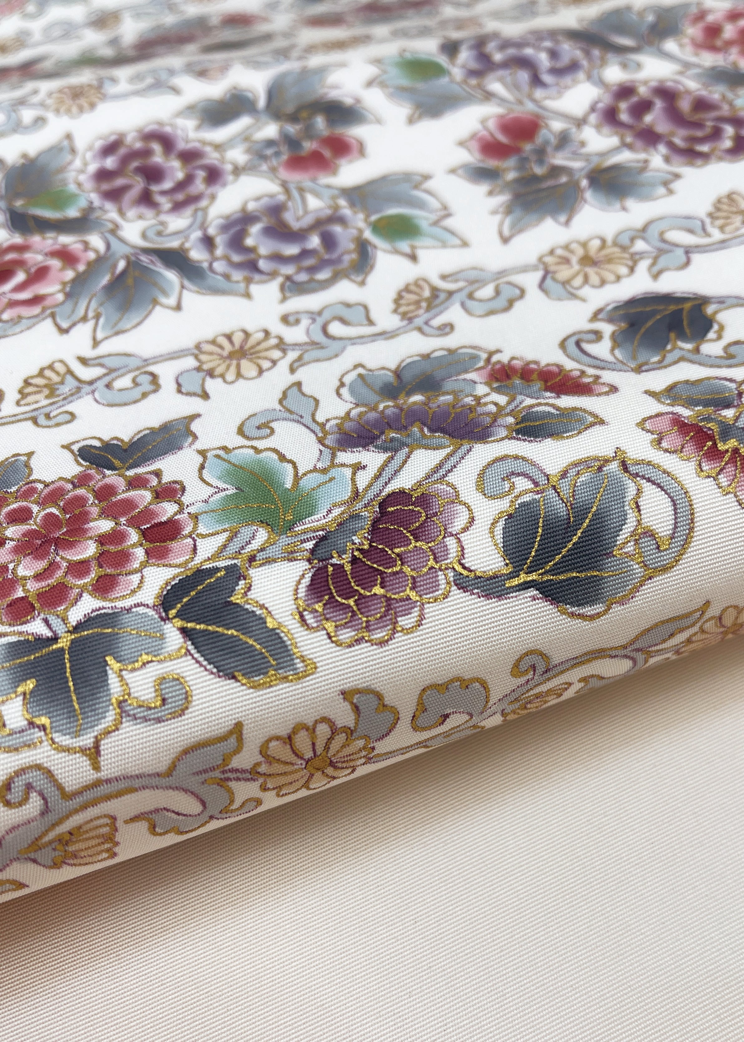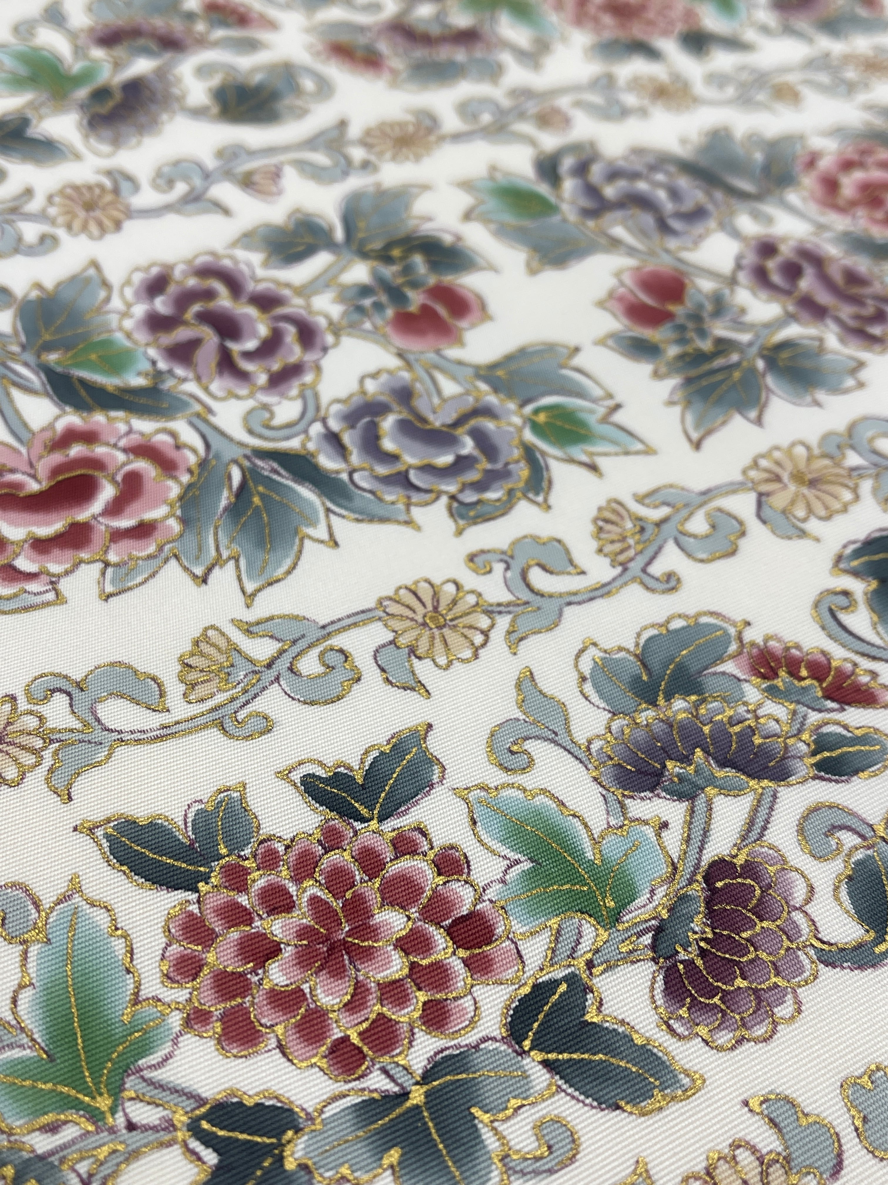 (名古屋)白地花金更紗風文様塩瀬 LUOHA−052(リユース品)