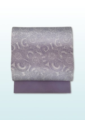 (袋)藤鼠半色地 人間国宝中村勇二郎彫刻 献上古代菊袋帯 LUOGO−054(リユース品)