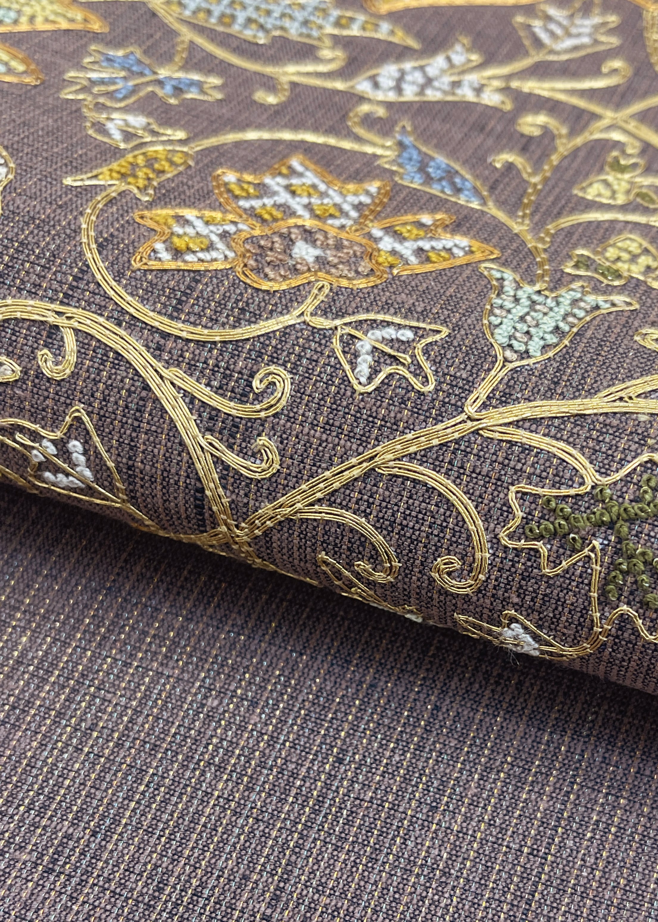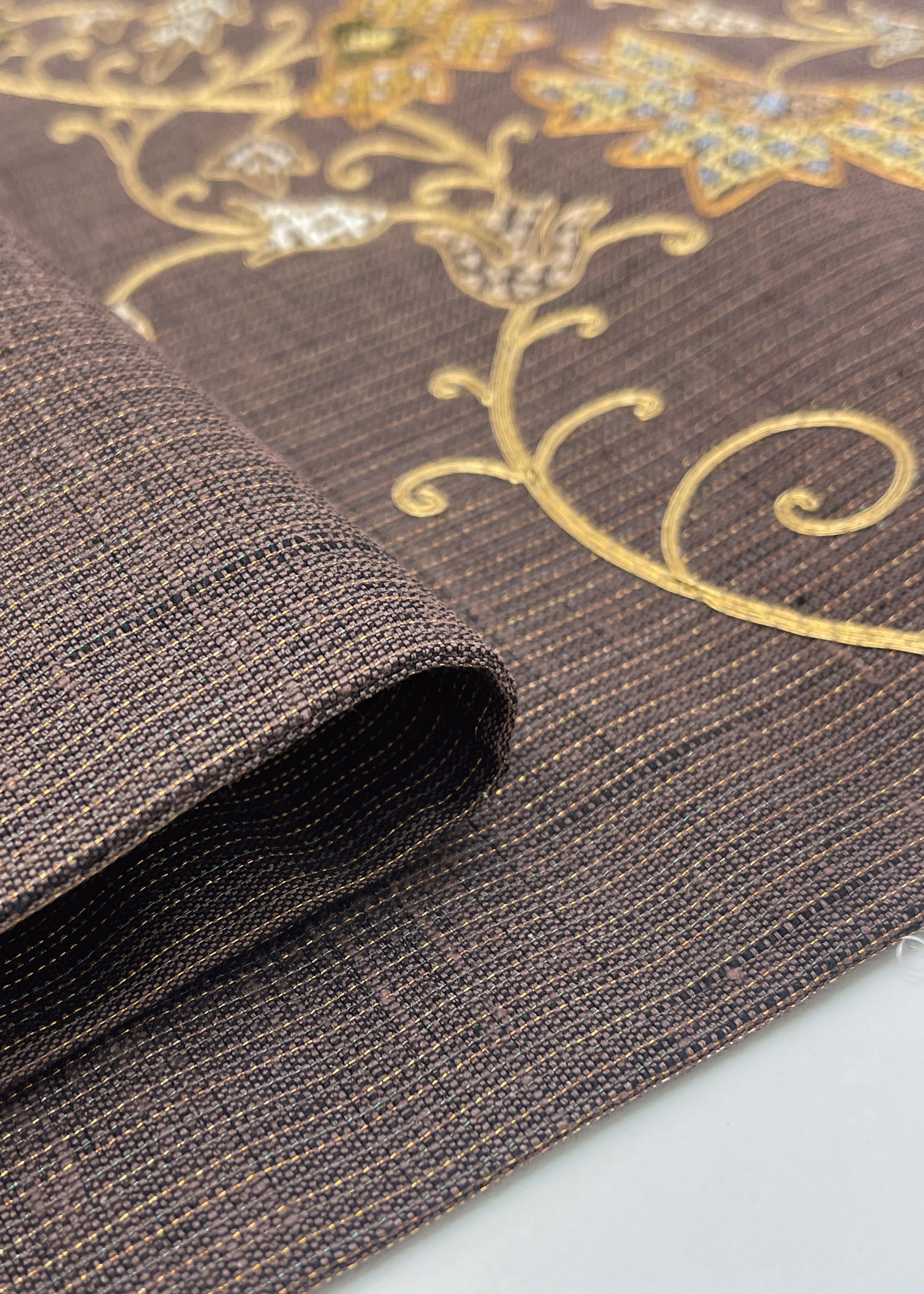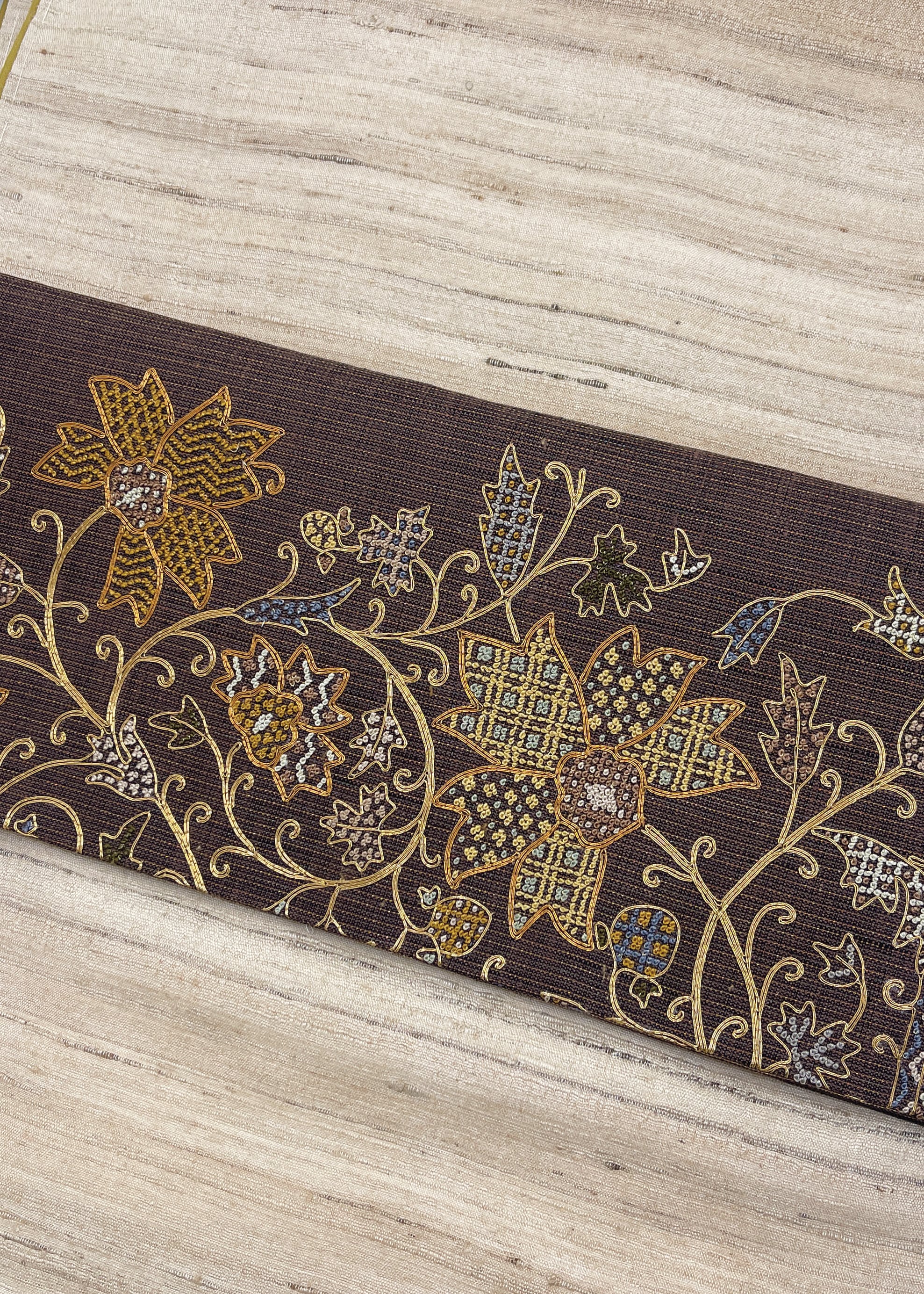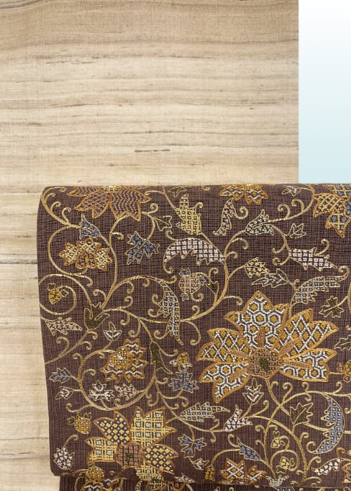 落ち着いたお色目の金糸を大胆に使い、合わせた他のお色目をシックに抑えて上品な仕上がりとなりました。
