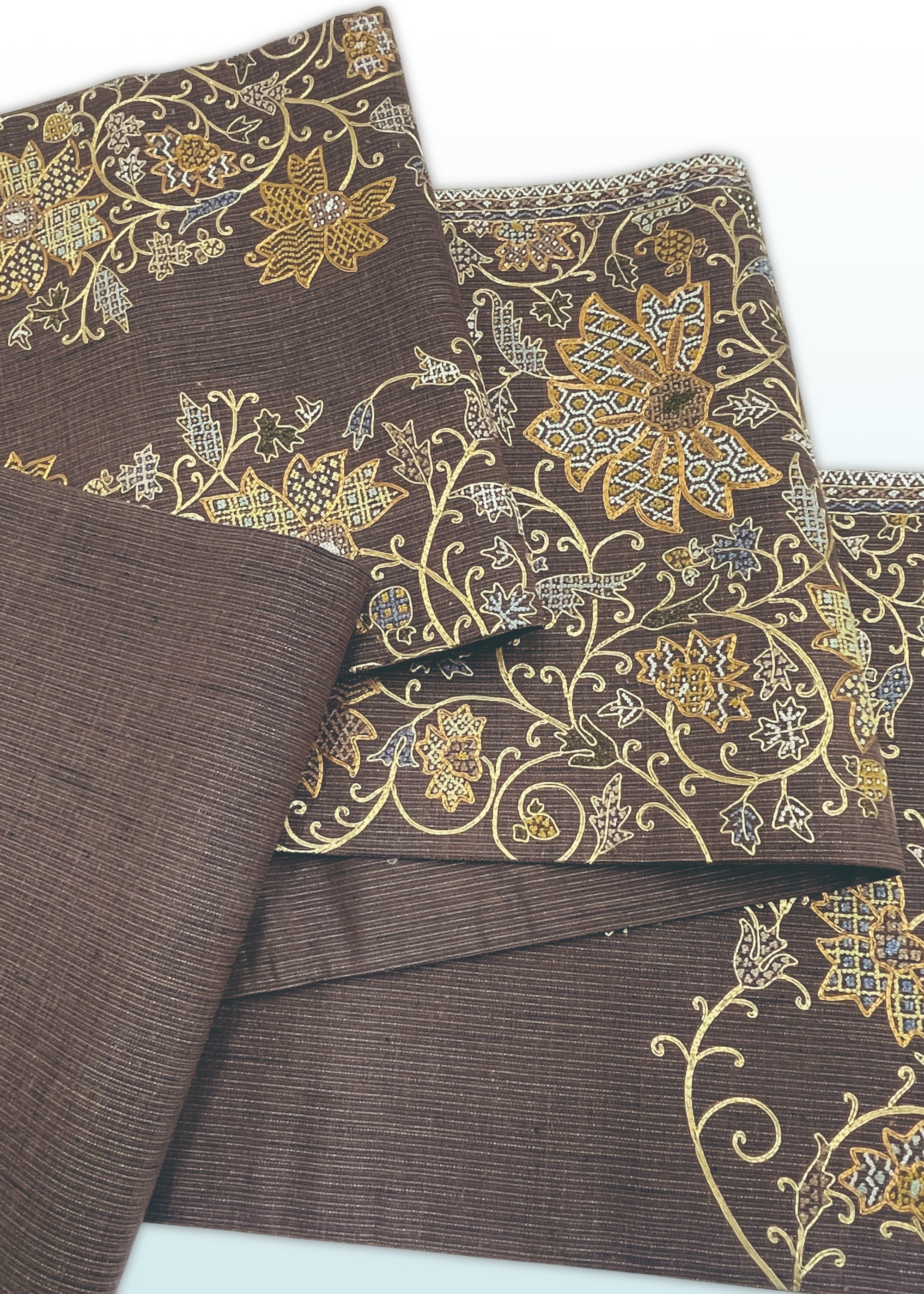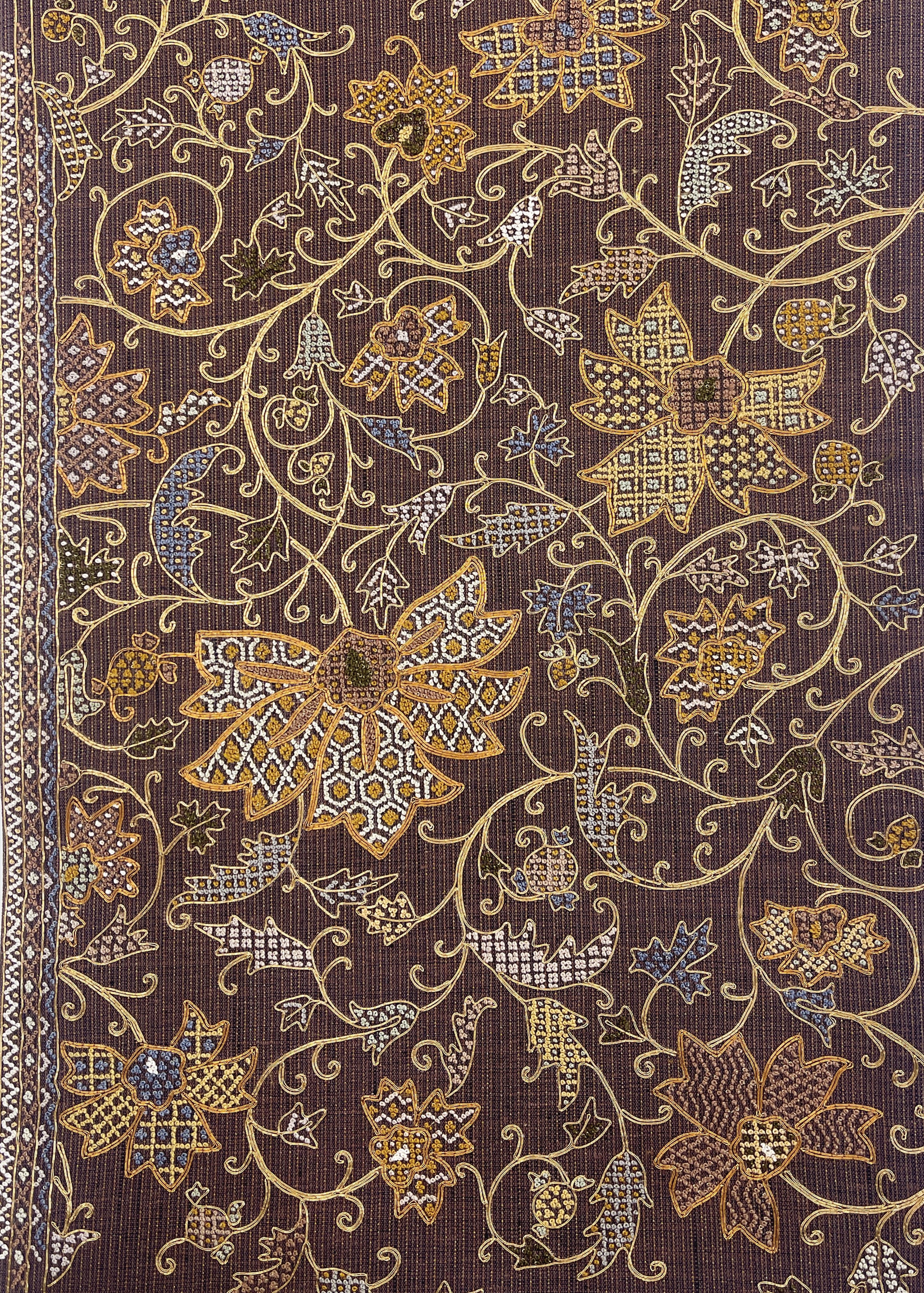 (袋)焦茶地金透し 唐草文金糸相良刺繍 LUOMA−057(リユース品)
