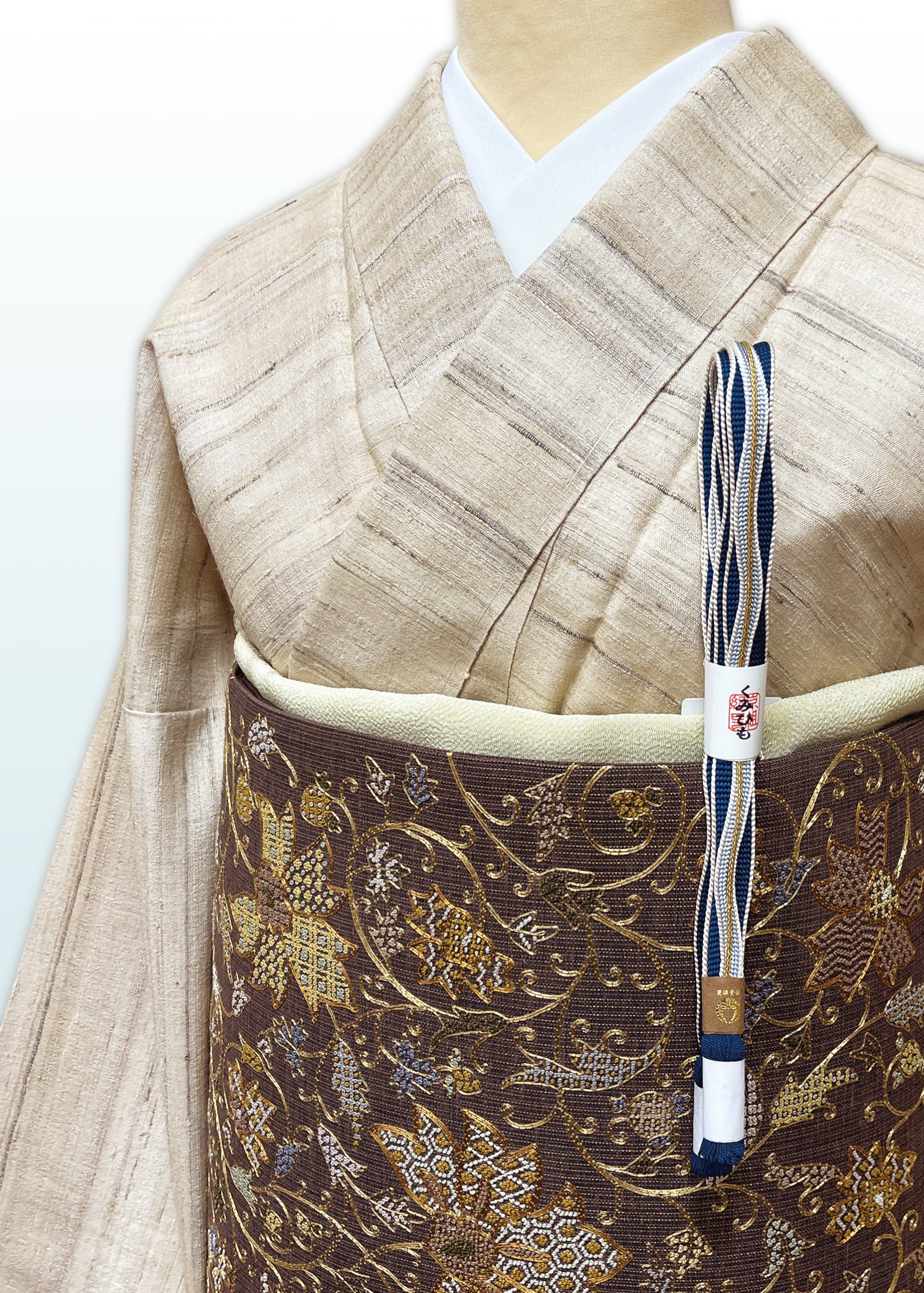 今回は表情豊かなタッサーシルクのお着物とあわせました。
