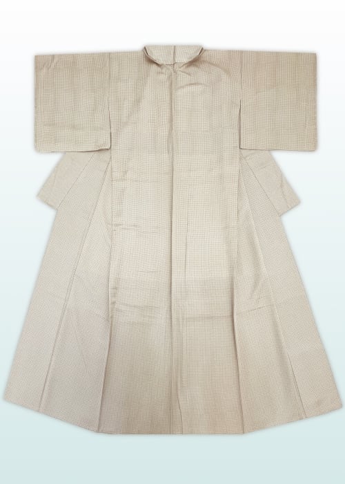 (袷)クリーム地角ドット 綸子小紋 紋なし・しつけ糸付き LUKKA -054(リユース品)