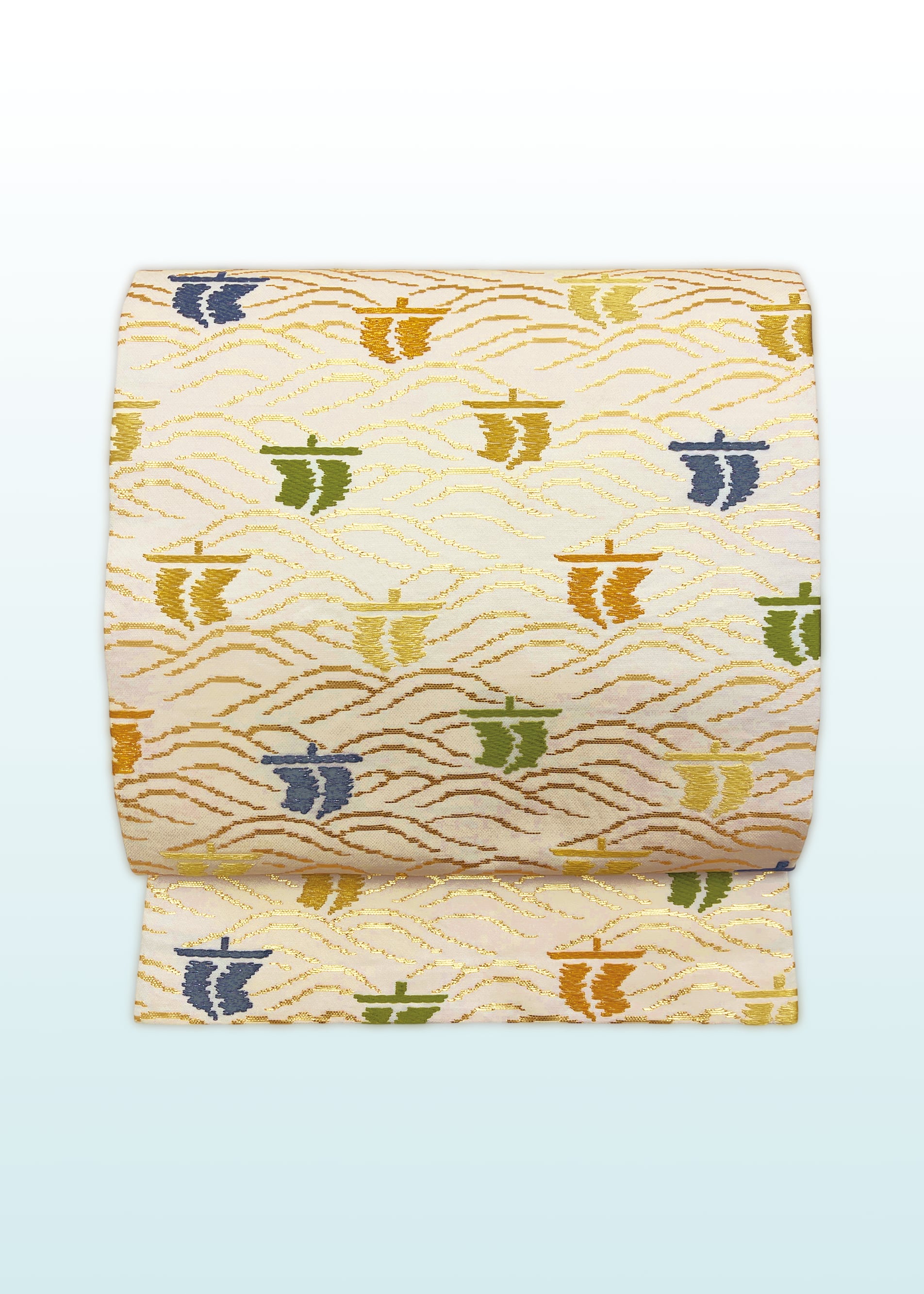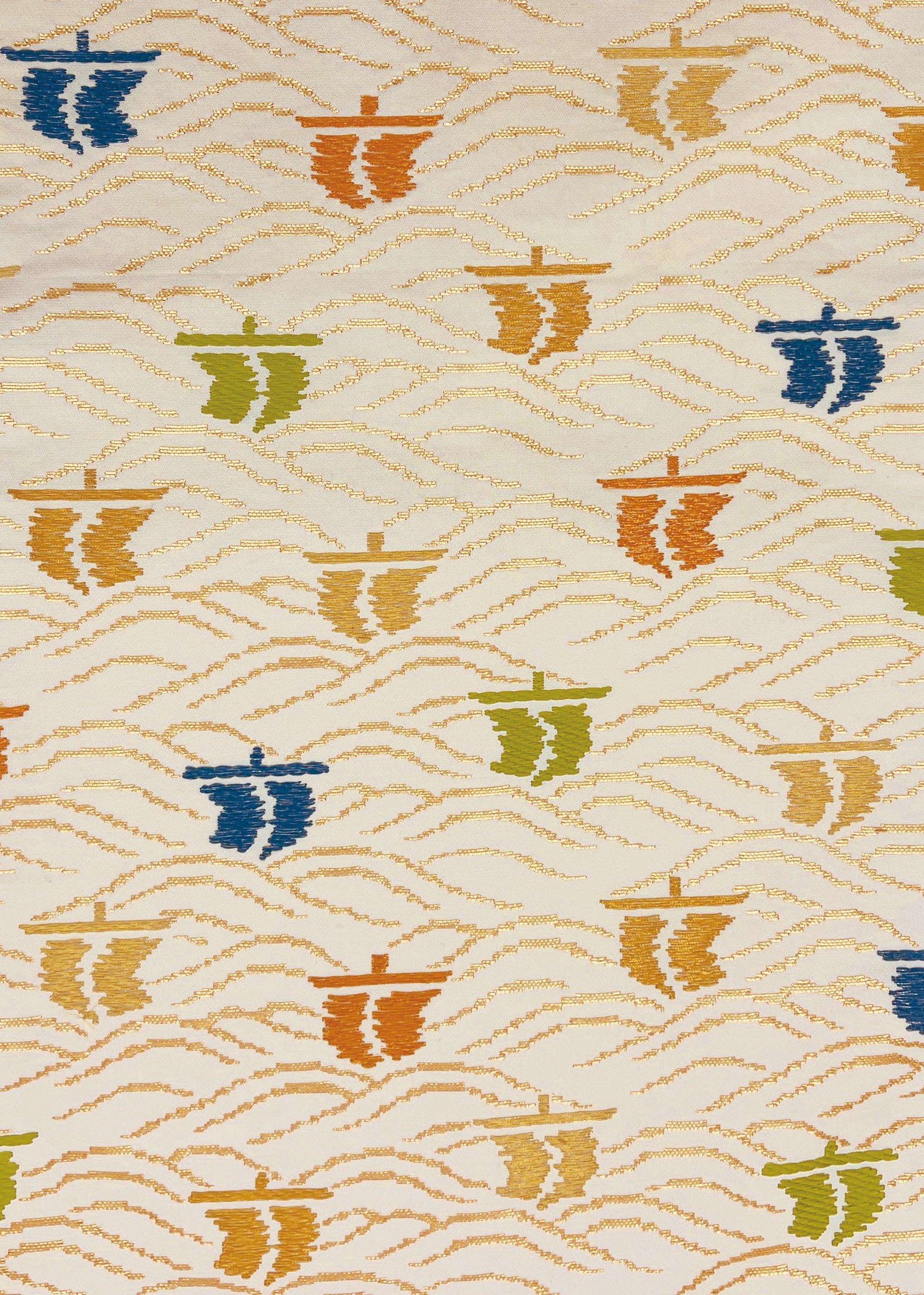 (名古屋)生成地 龍村美術織物製 波に帆掛船文様 LUOKA−059(リユース品)