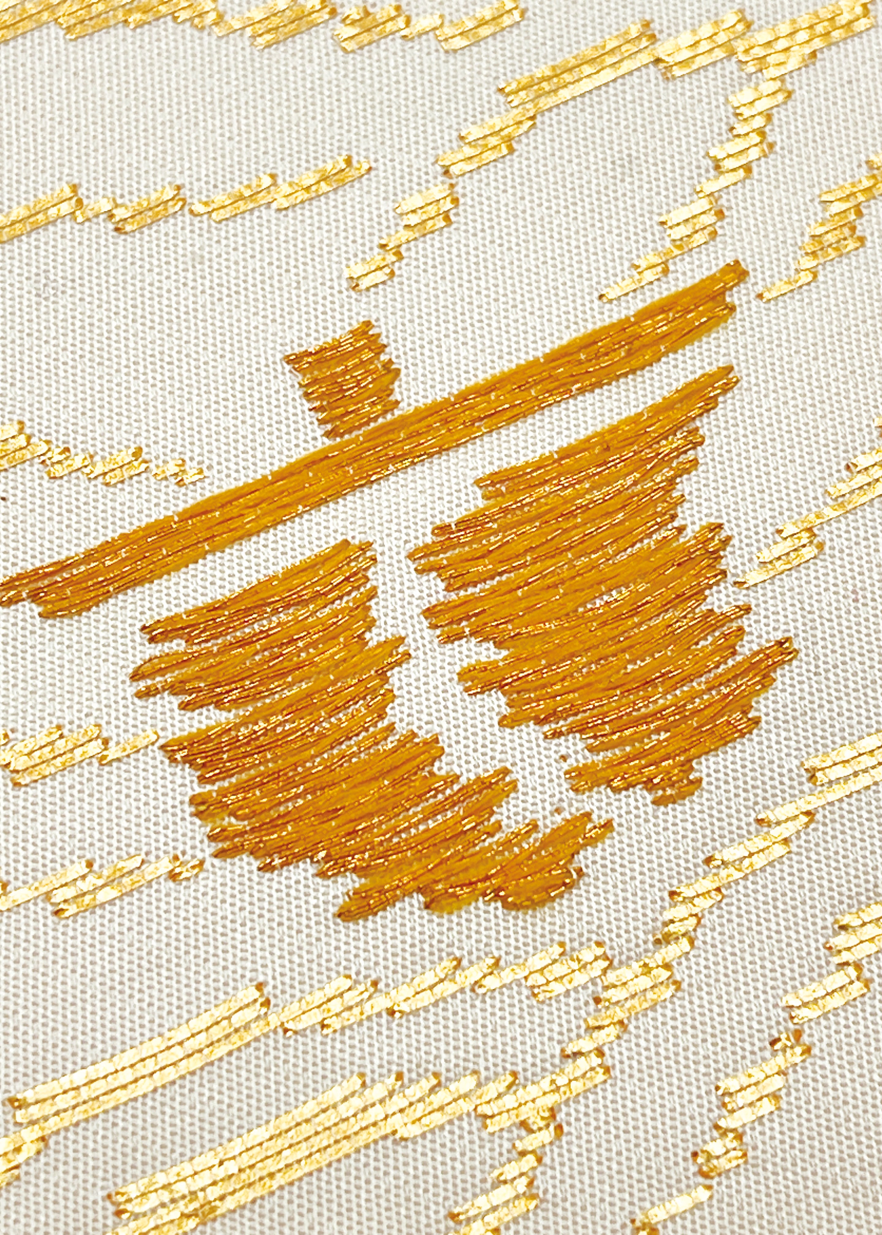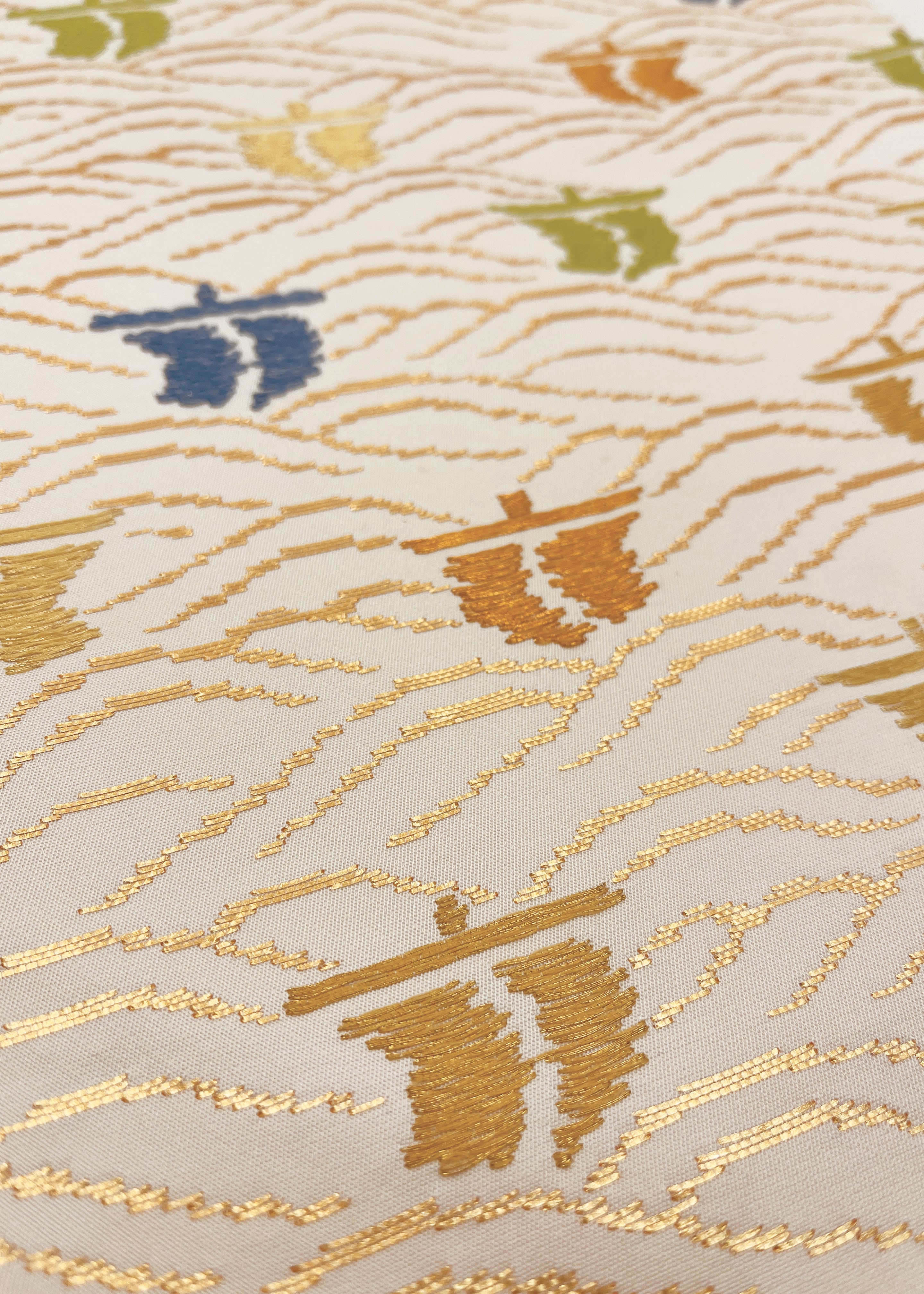 龍村美術織物の繊細な織物技術に乗せて、ほかけと題された名古屋帯です。