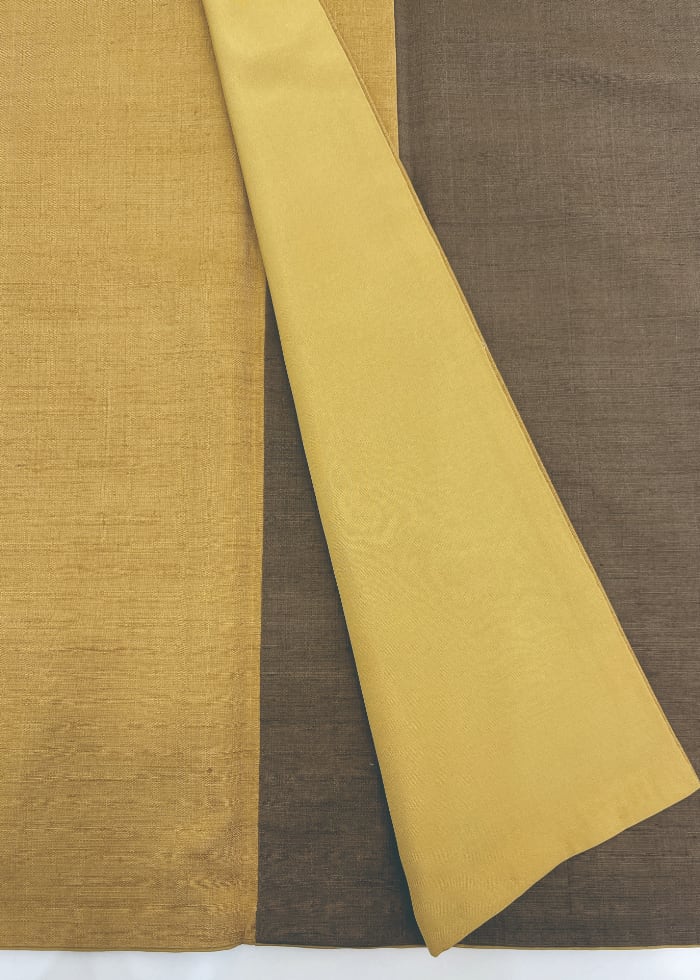 (袷)枯茶地×山吹茶地 染め分け紬 LUKKO-061(リユース品)