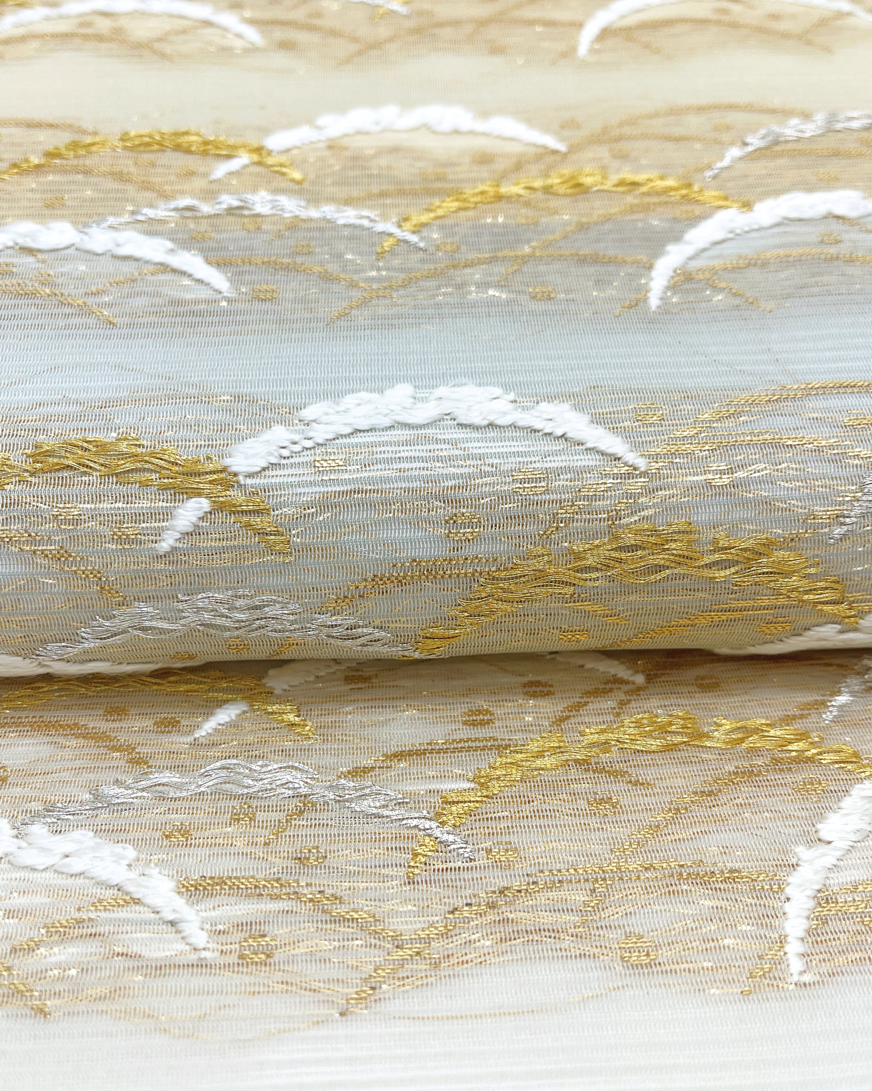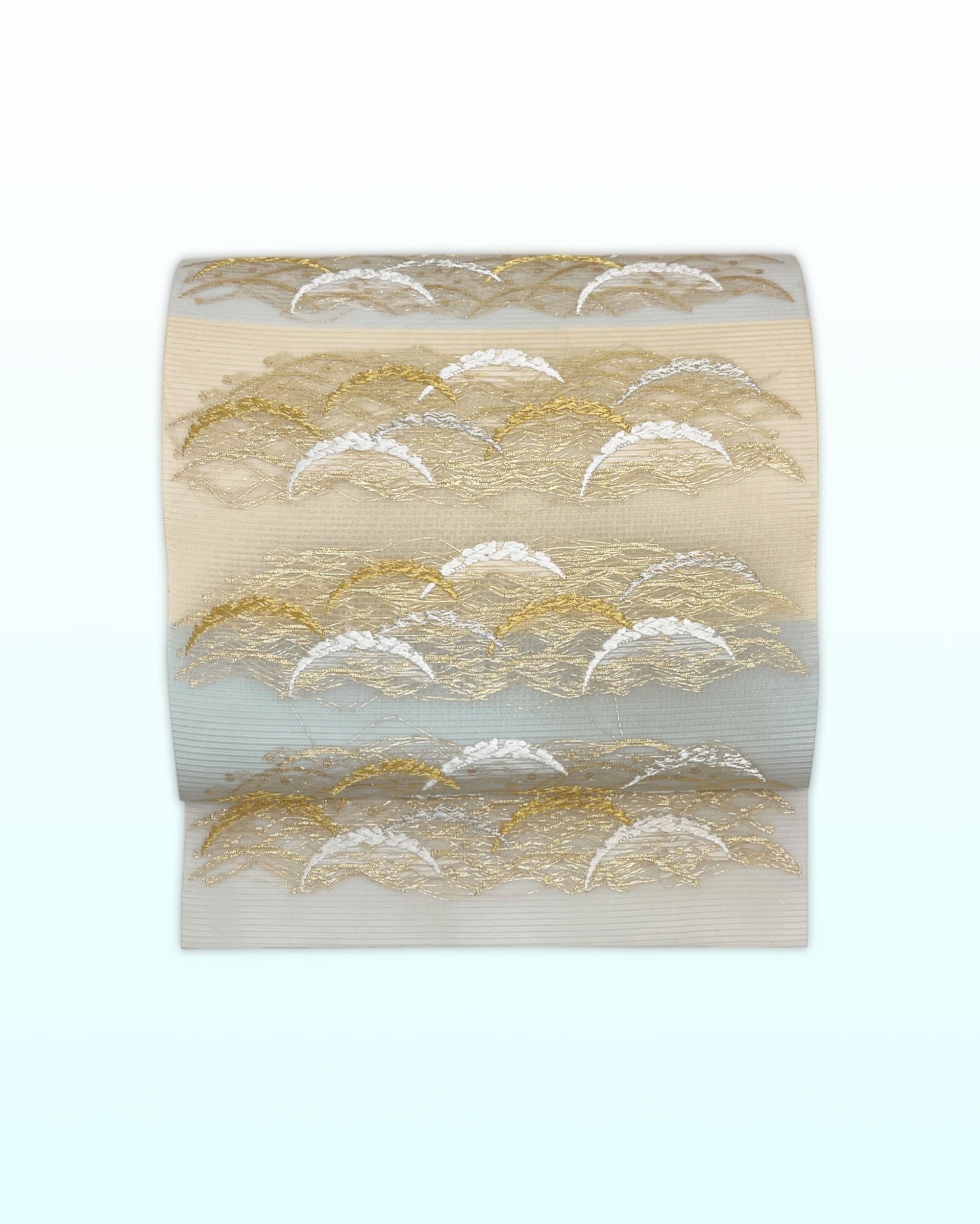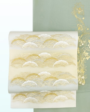 今回のお品は段に露芝文様を織り出し、涼やかなお色遣いで、清涼感を表現しています。