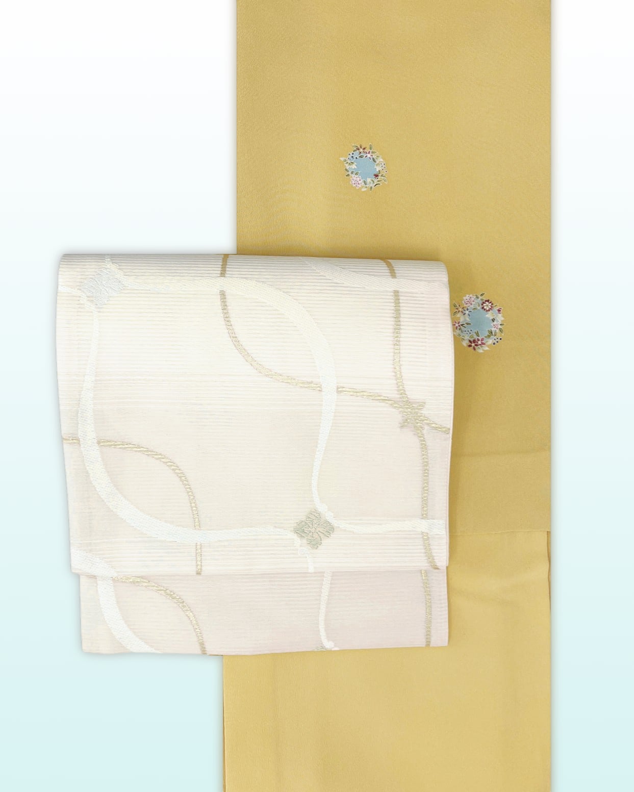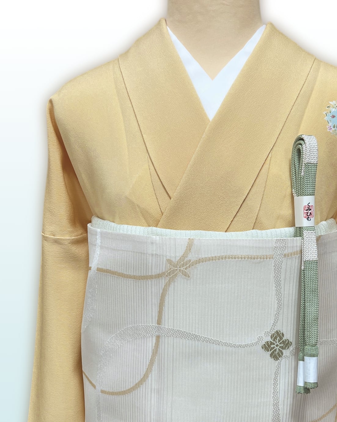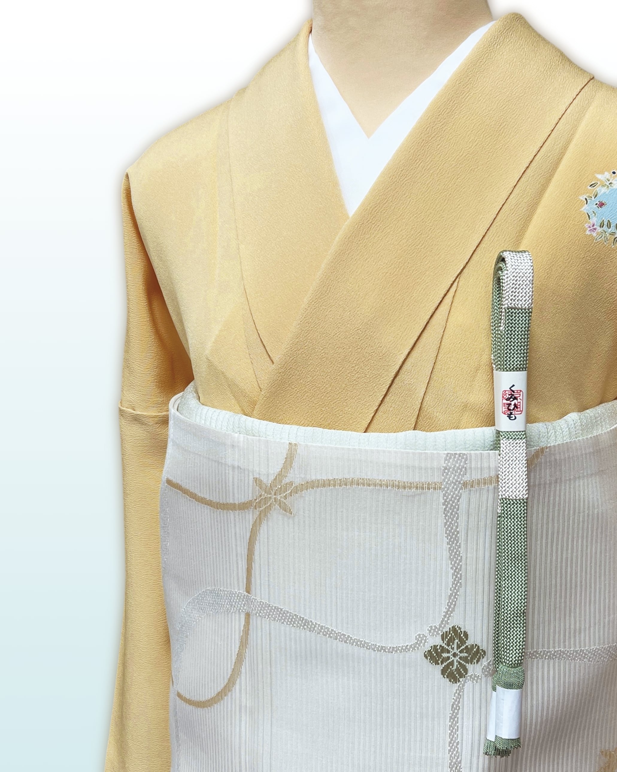 今回は一足早く初夏の爽やかさを感じられる袋帯を合わせて見ました。カジュアルからセミフォーマルまでお召しいただけそうです。