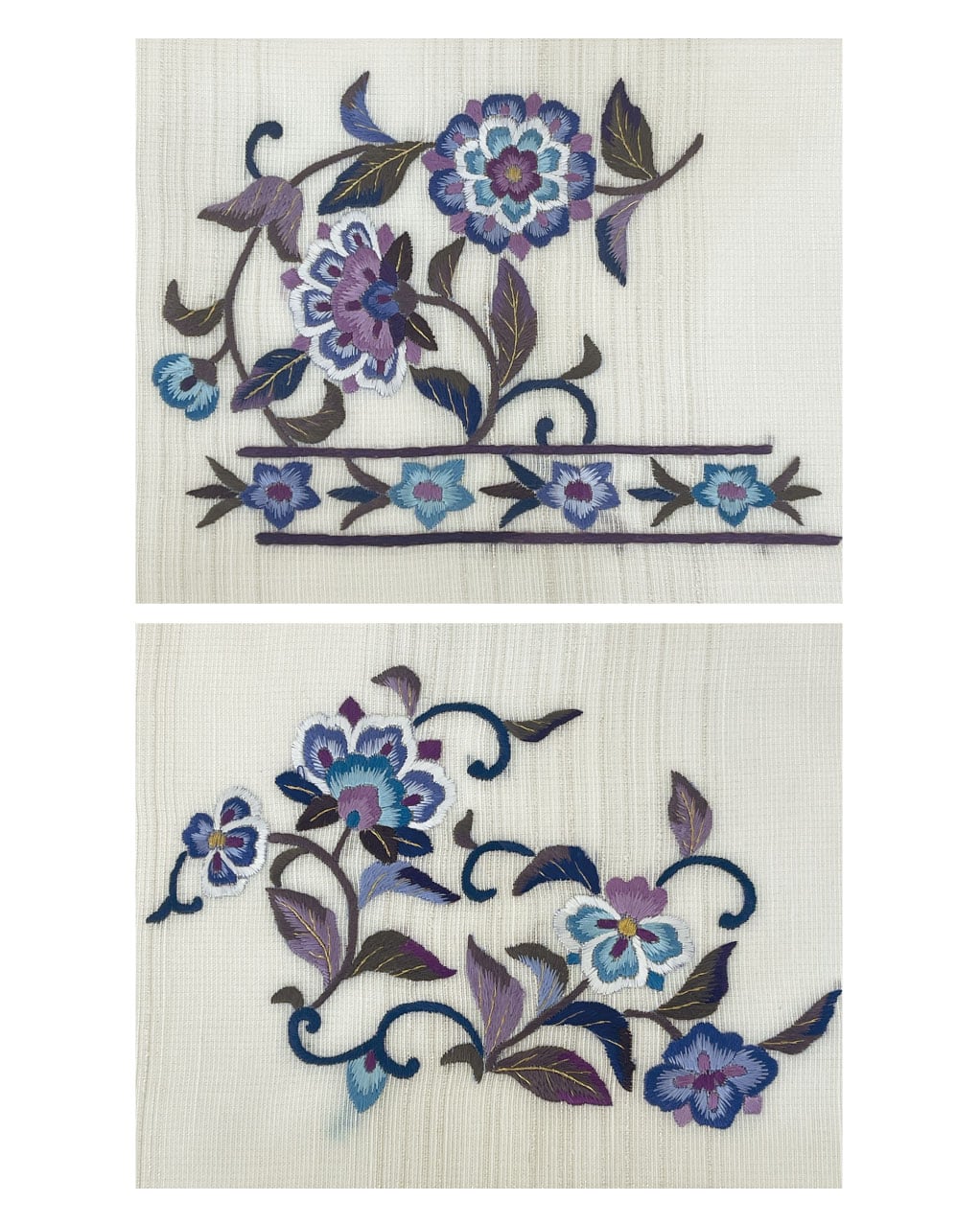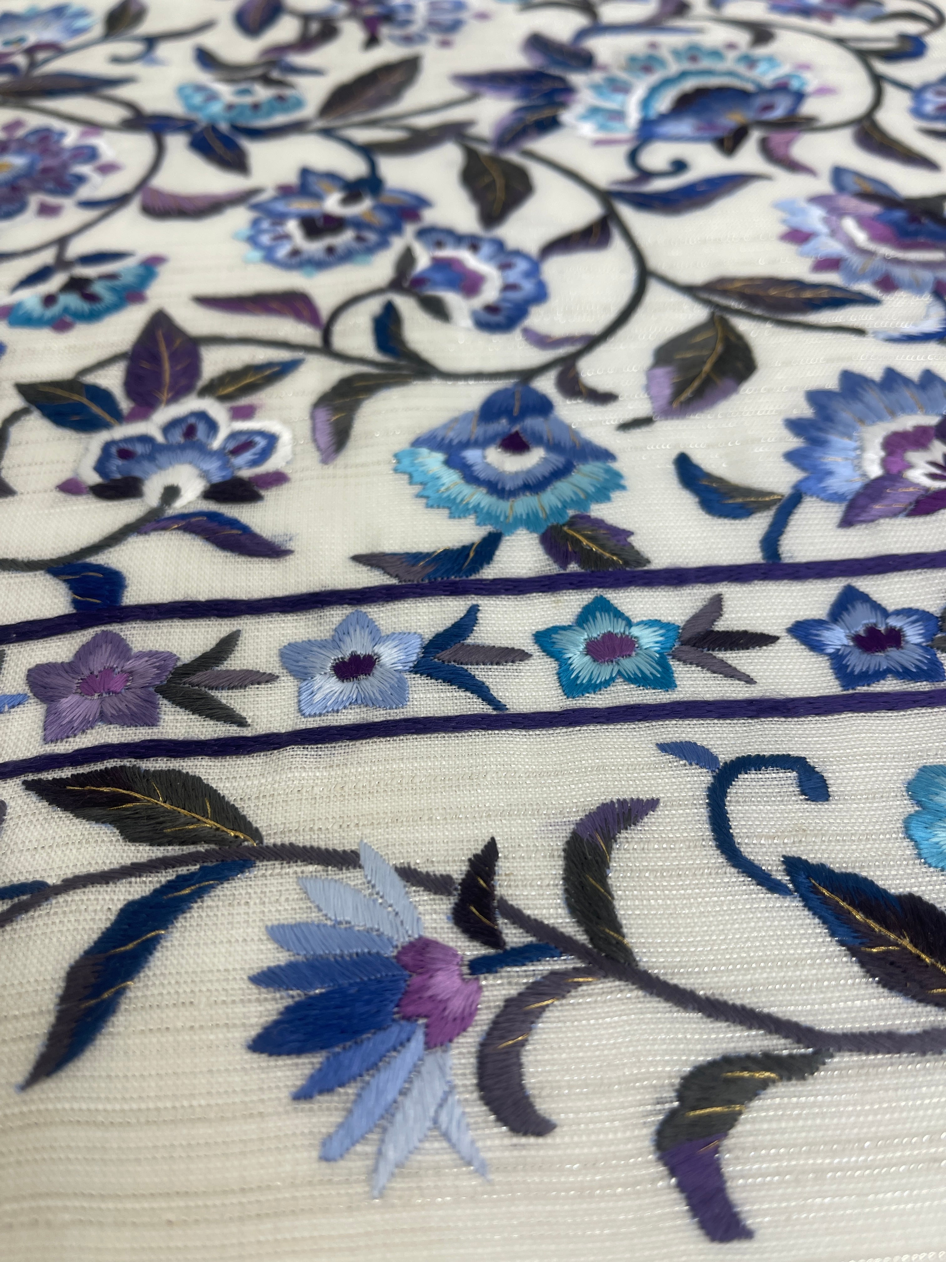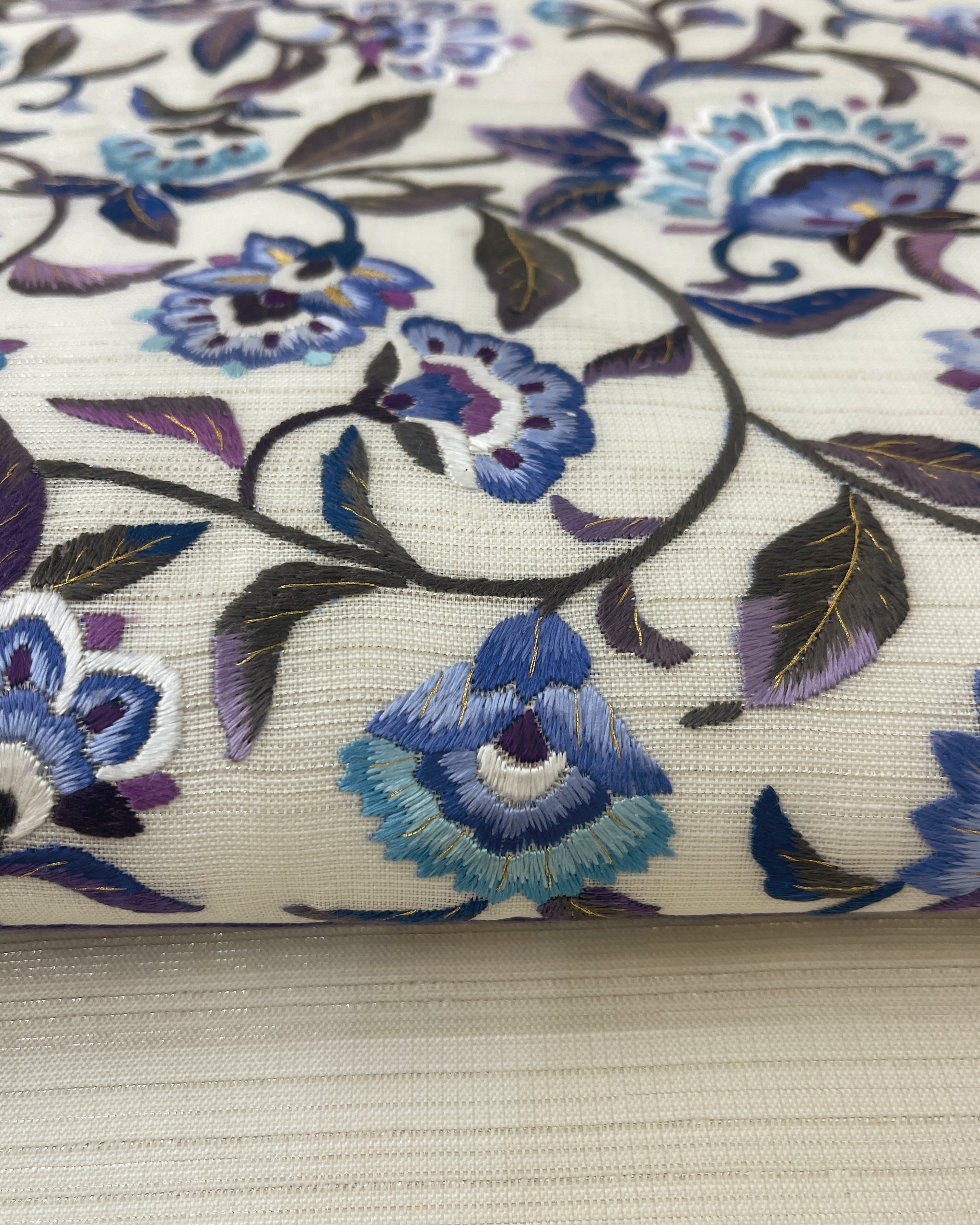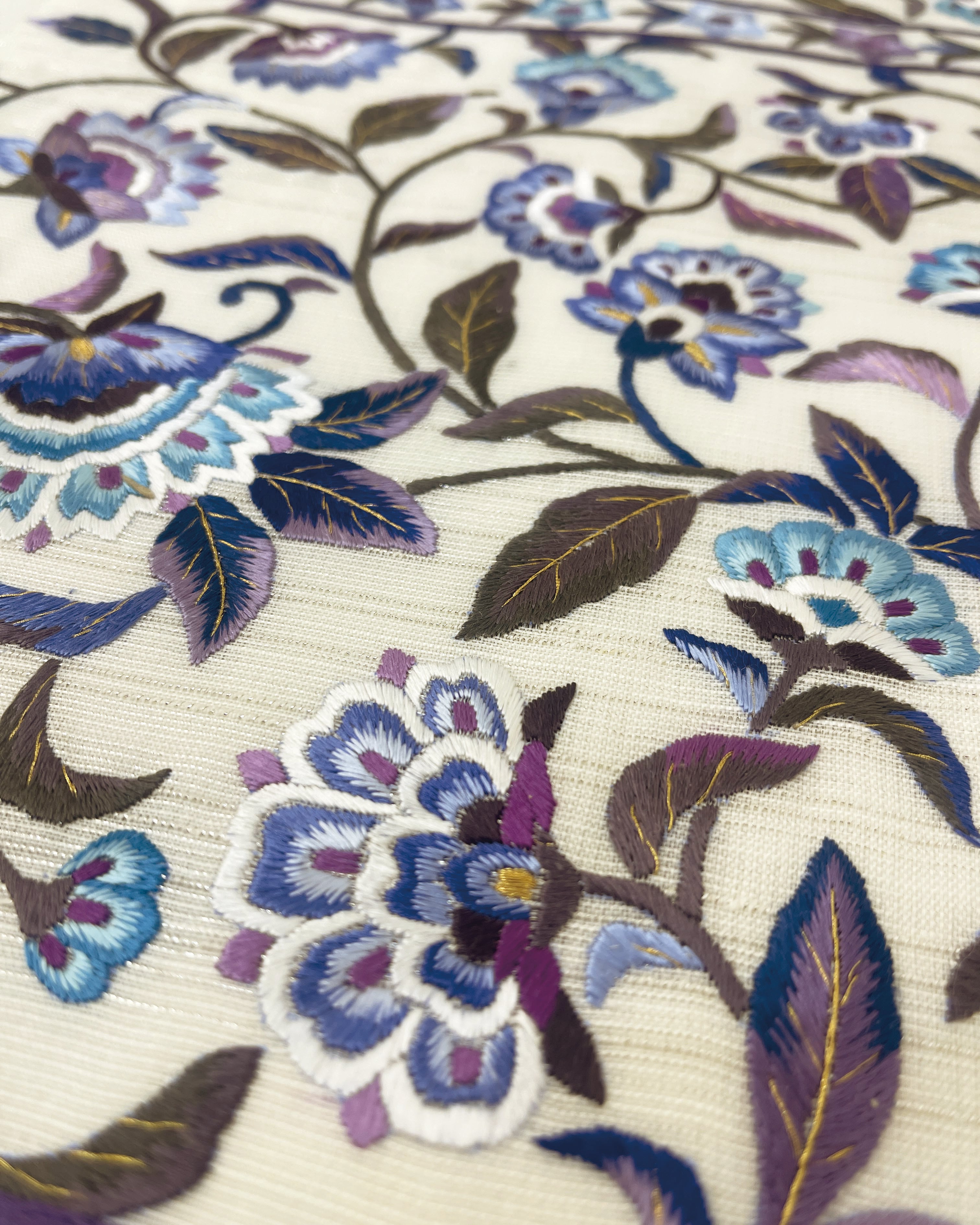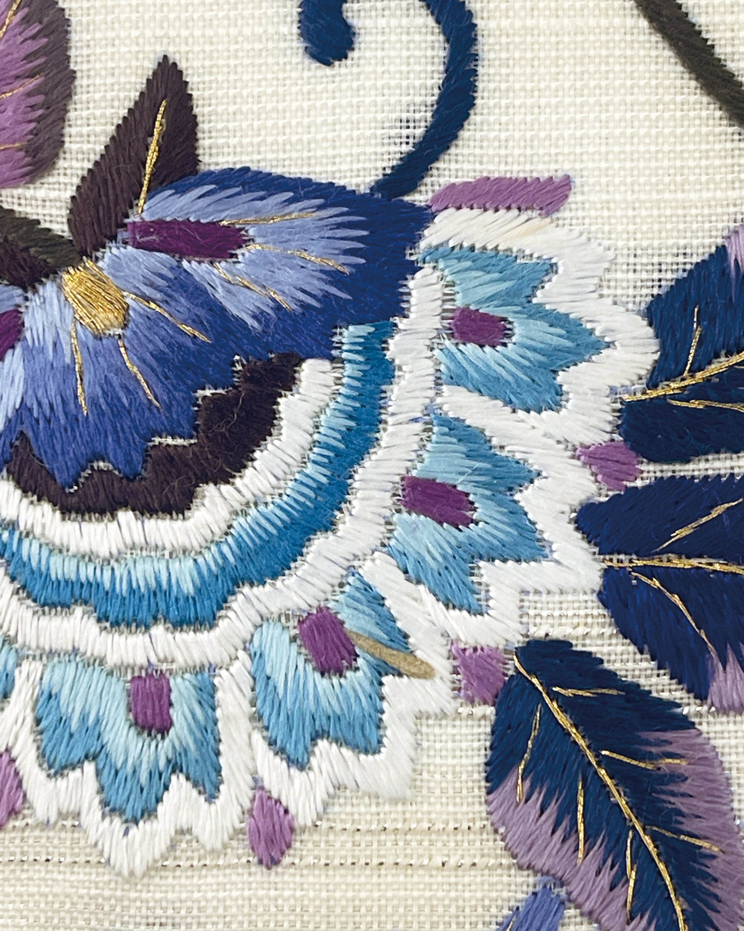 一つ一つの刺繍は人の手による豪華な刺繍で、浮き立つようなボリューム感があります。